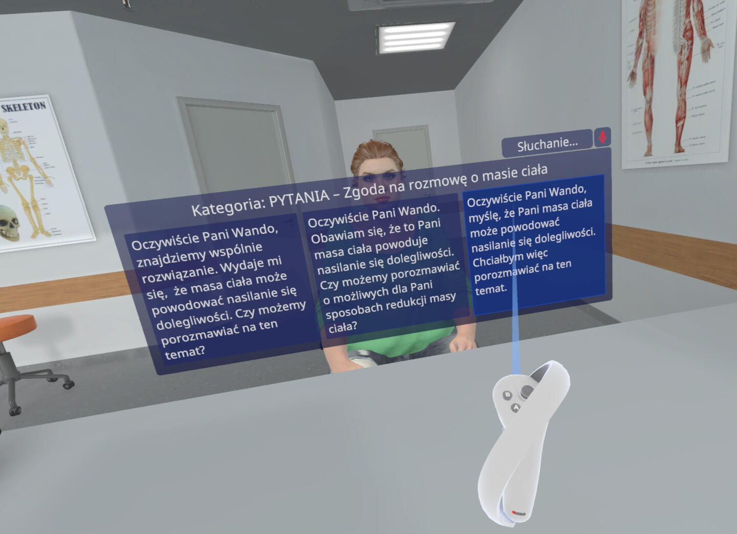 I've created VR training for doctors and primary care physicians that immersively guides through right Questions and Answers when talking about obesity.Featuring AI-assisted voice recognition, generic procedural run-time humanoid animation, analytics.