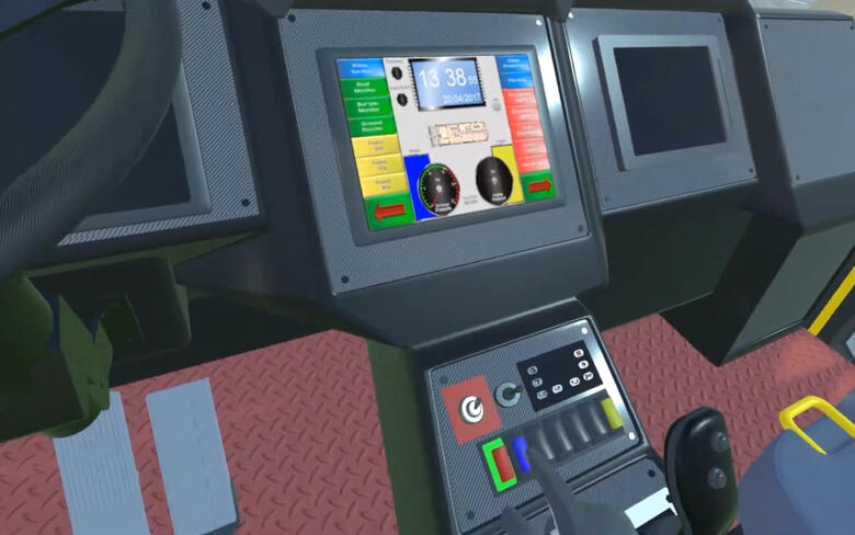 Using complicated machinery like modern firetruck is both time consuming and expensive.Not mentioning cost of renting airport space and setting fire to a real plane mockup.A virtual reality simulator of a firetruck was made to reduce training cost and improve safety by using newest technologies.This Custom-built setup with pseudo-touch screens was integrated with Leap Motion and Oculus Rift S